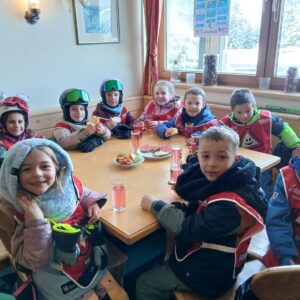 Auch das gemütliche Beisammensein durfte natürlich nicht fehlen: Im Alpengasthaus Halsmarter stärkten sich die Kinder täglich bei einer Jause und einem wohlverdienten Schiwasser.